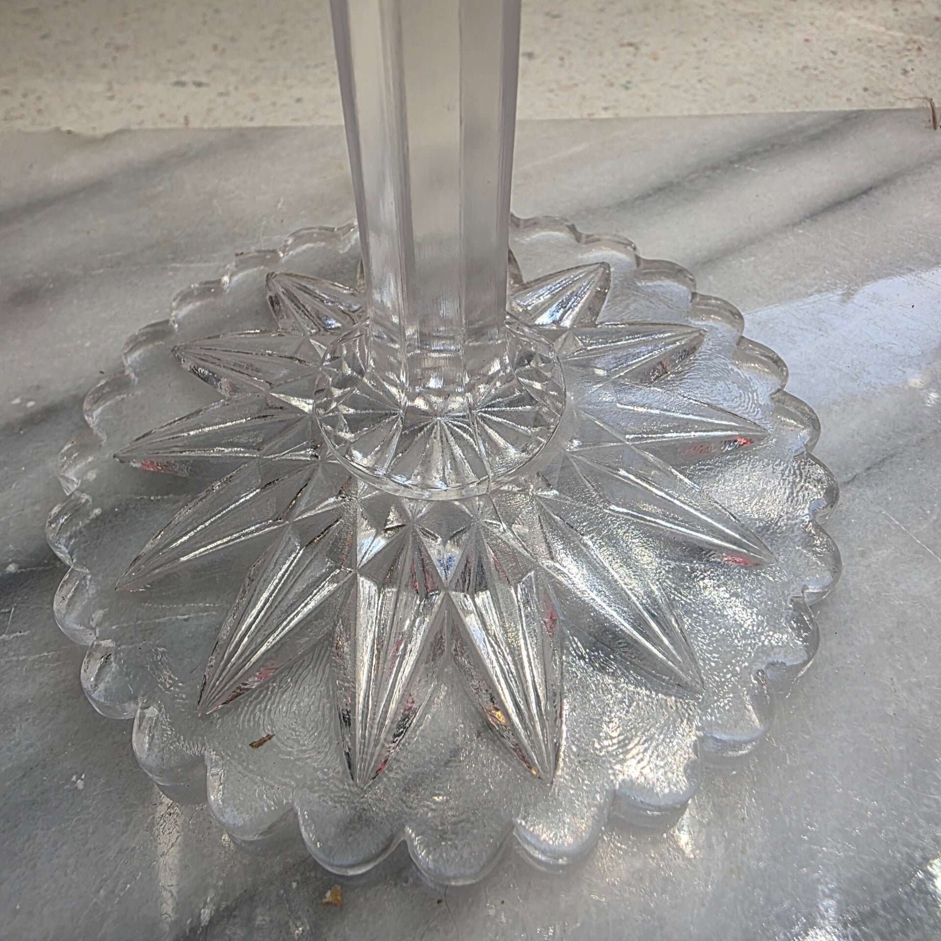 Compotes, also known as comport dishes, are footed bowls used for serving fruits, desserts, or decorative displays. The elaborate cutting patterns seen on pieces from the ABCG period, such as hobstars, fans, and diamonds, were designed to maximize the sparkle and brilliance of the glass. These pieces were often produced by various glass companies across the United States, and while some are marked, many are identified by their distinctive patterns and quality of cut. This is a brilliant cut with no chips or cracks and weighs in at 1lb. 7.5oz!