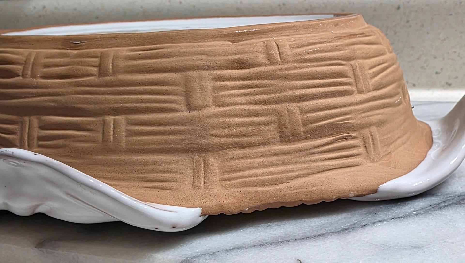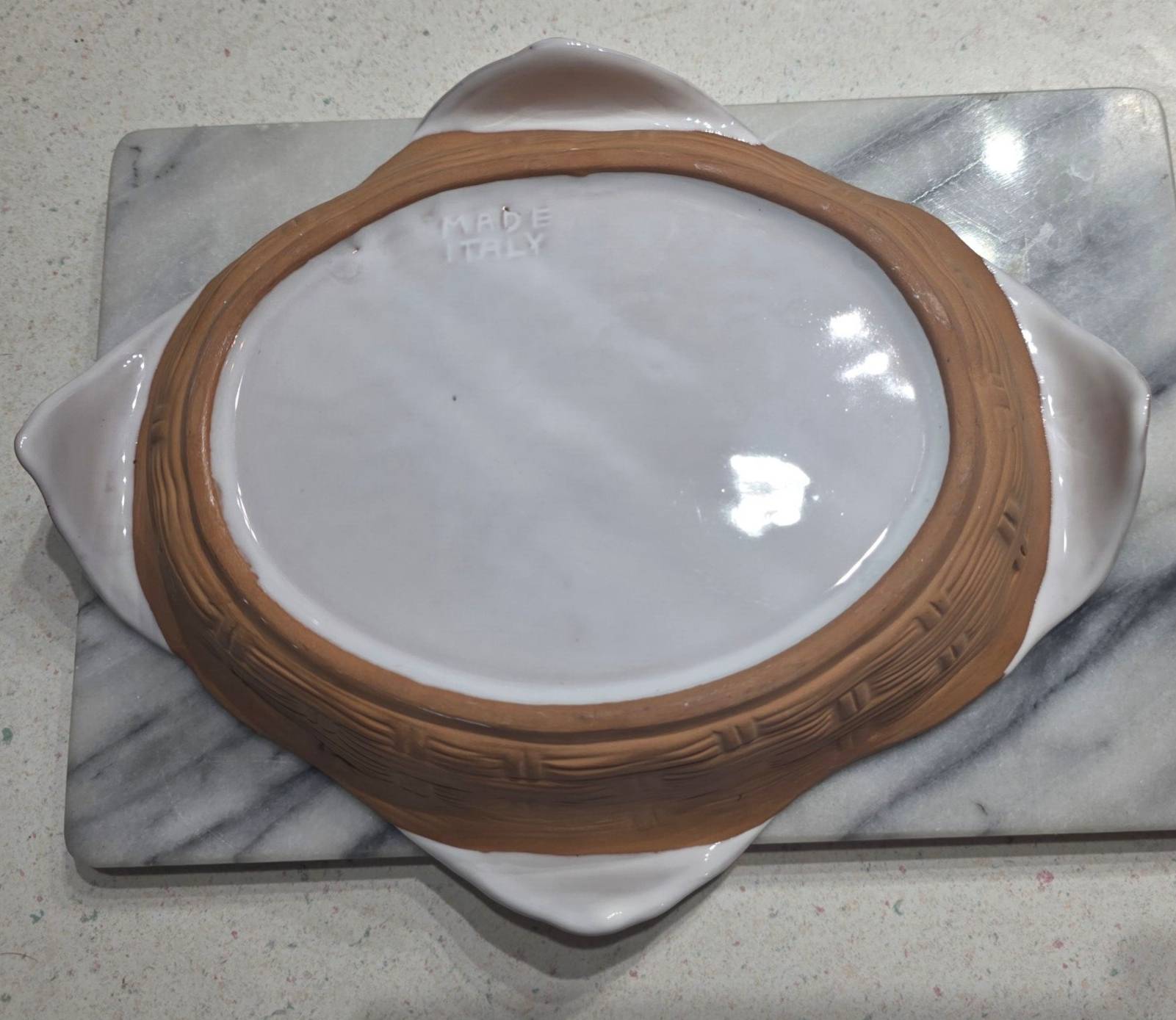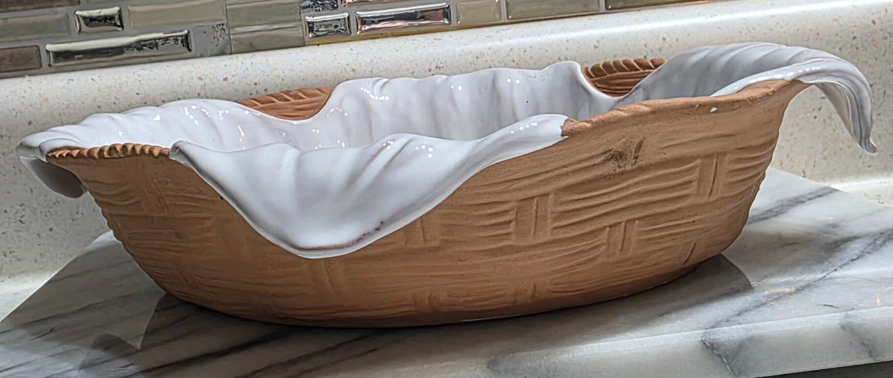 Italian Clay Basket Weave Serving Dish with White Glaze