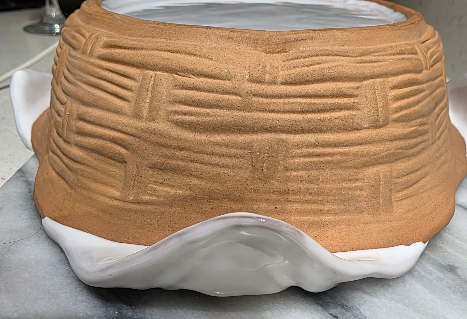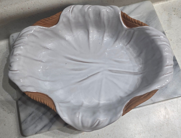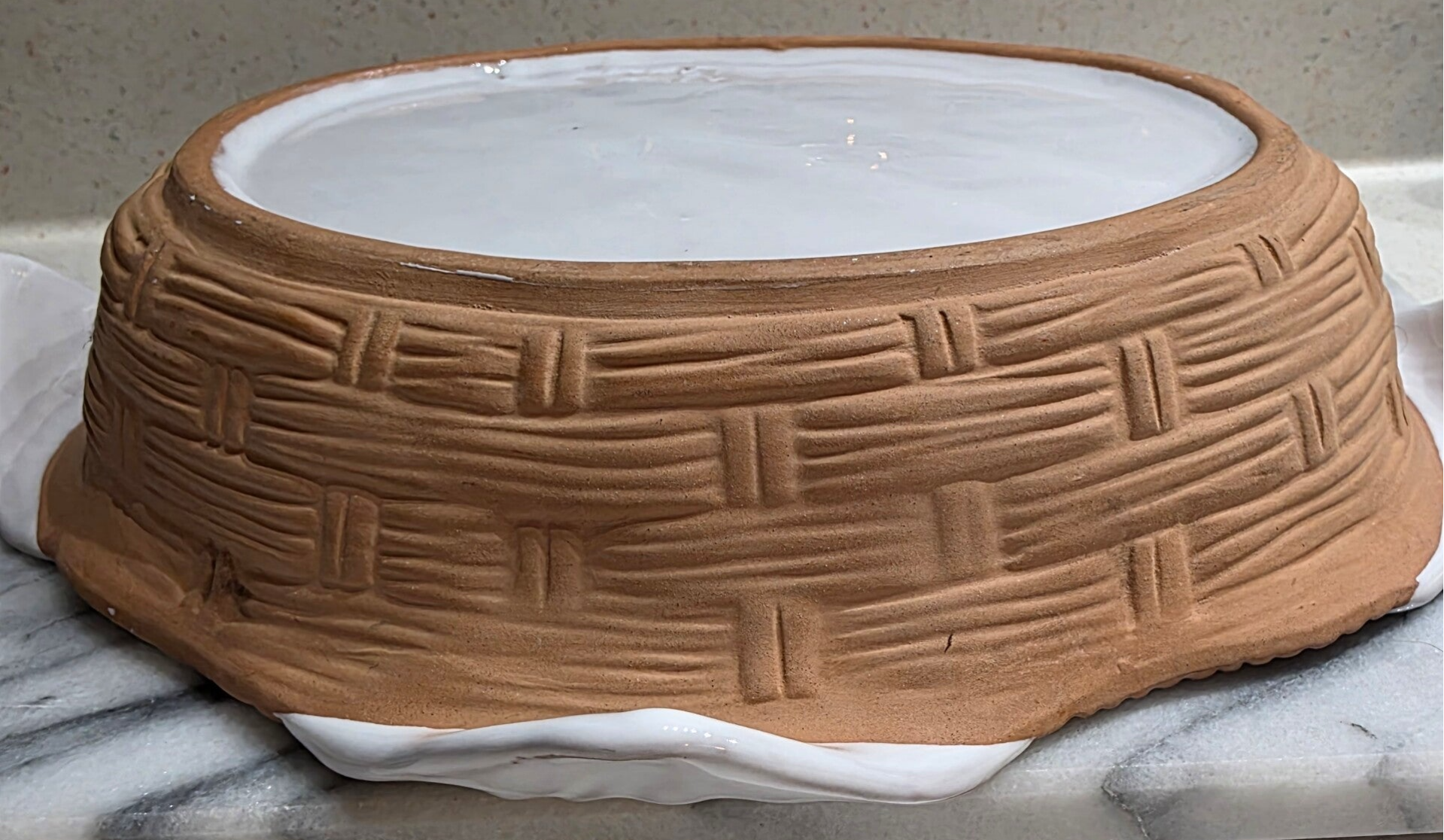 Italian Clay Basket Weave Serving Dish with White Glaze