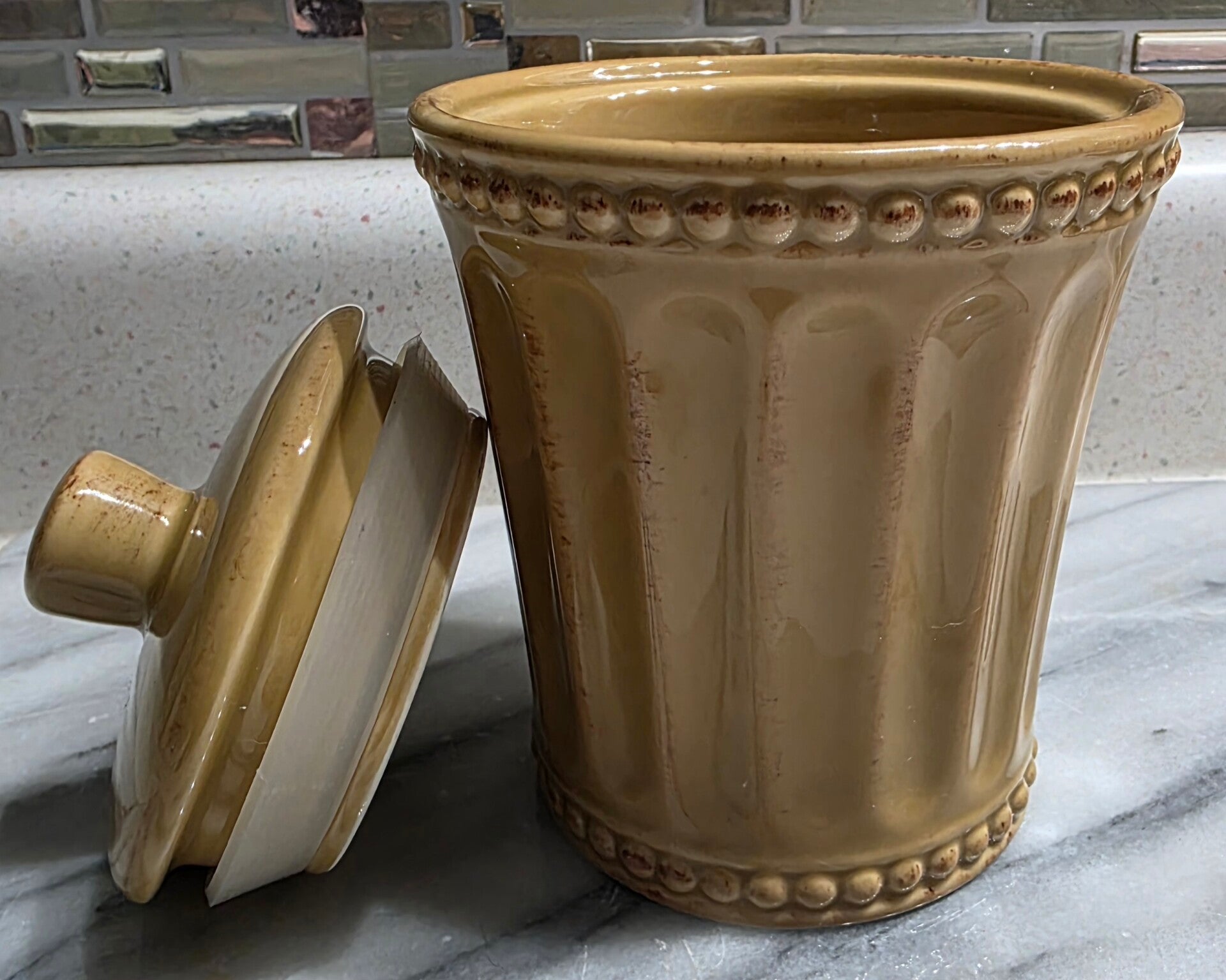 Homestead by At Home America Ceramic Canister Mustard Yellow With Lid