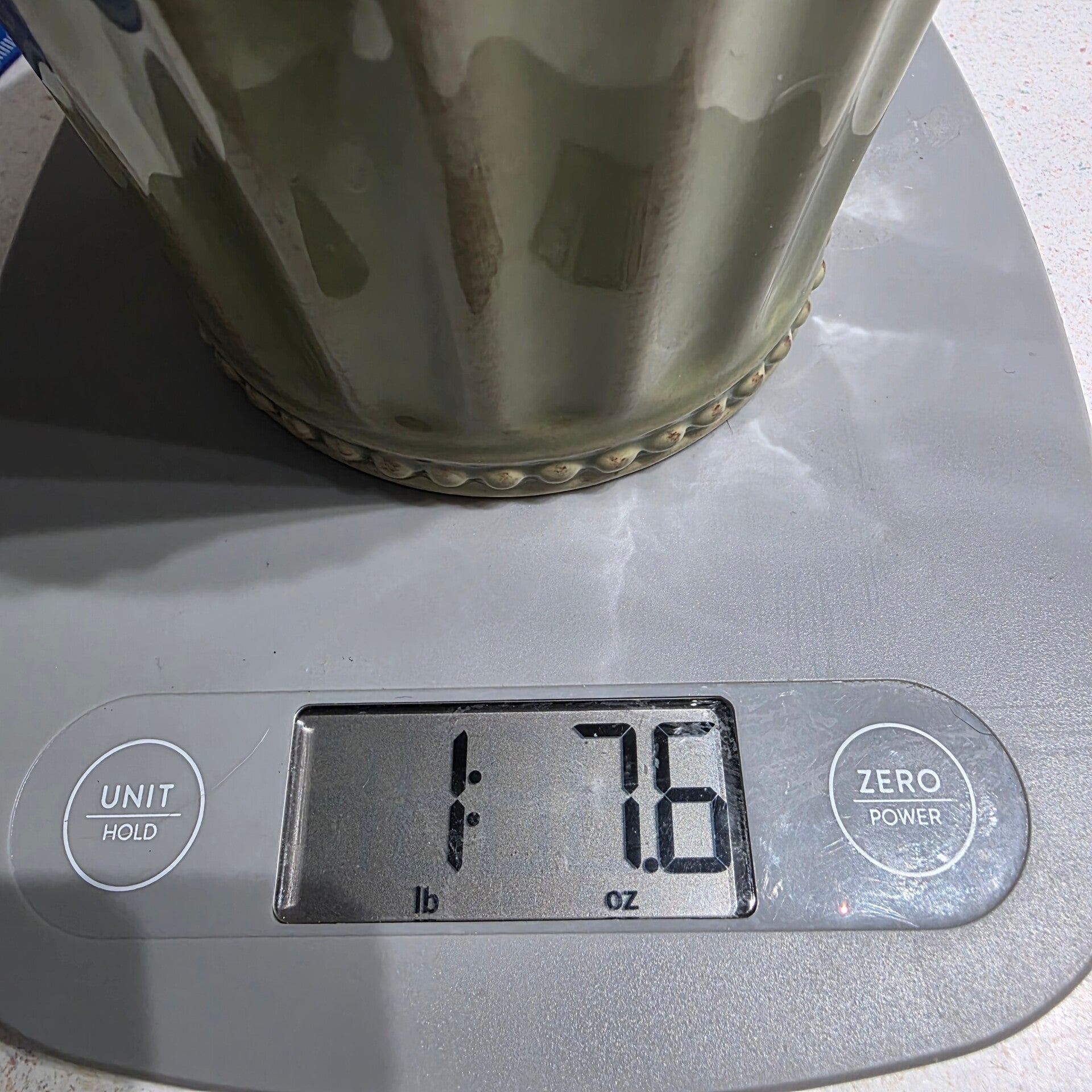Features: Features beaded detailing around the top and bottom rim with a fluted body.