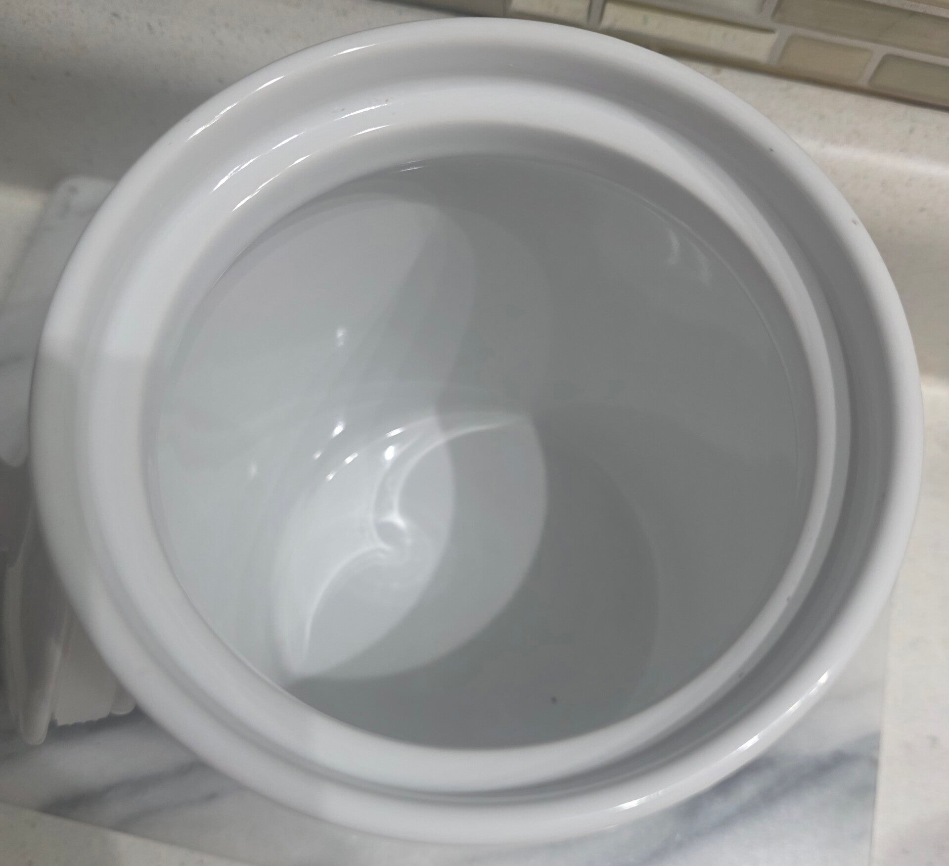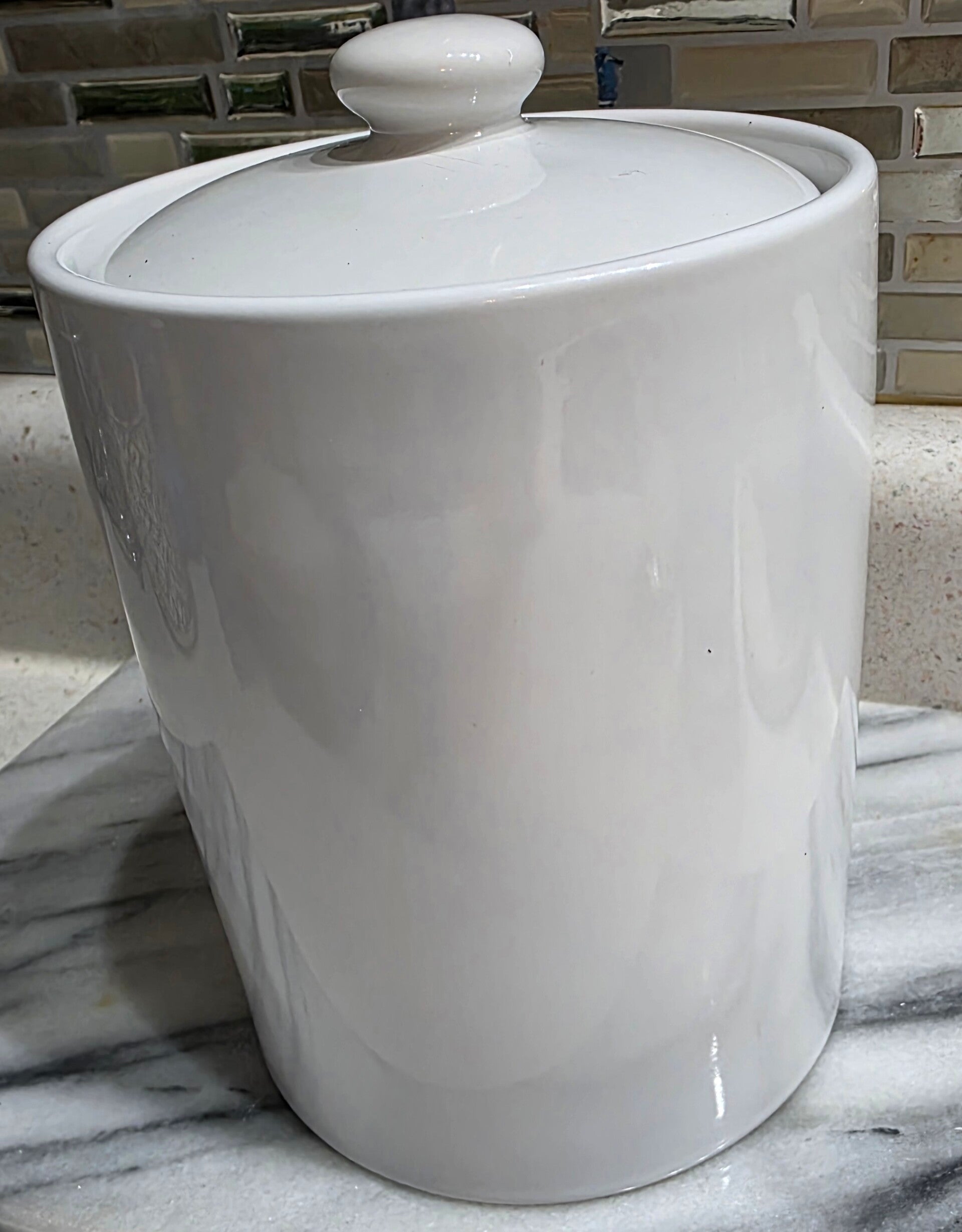 With a capacity of 43 oz and stands approximately 7 inches tall, it's perfect for storing sugar or other kitchen essentials. The solid white color and stoneware material add a touch of elegance to your kitchen decor.