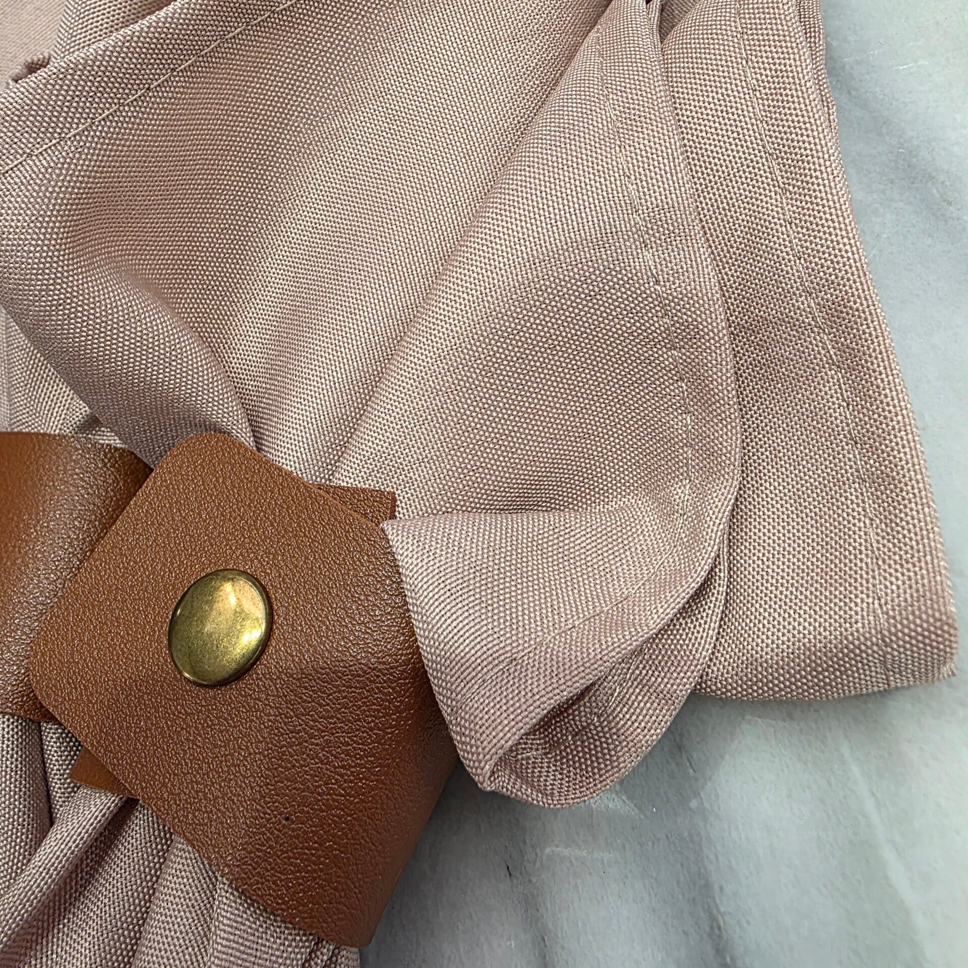 Beige Cloth With Faux Leather Snap Napkin Rings Button Accent Set of 2