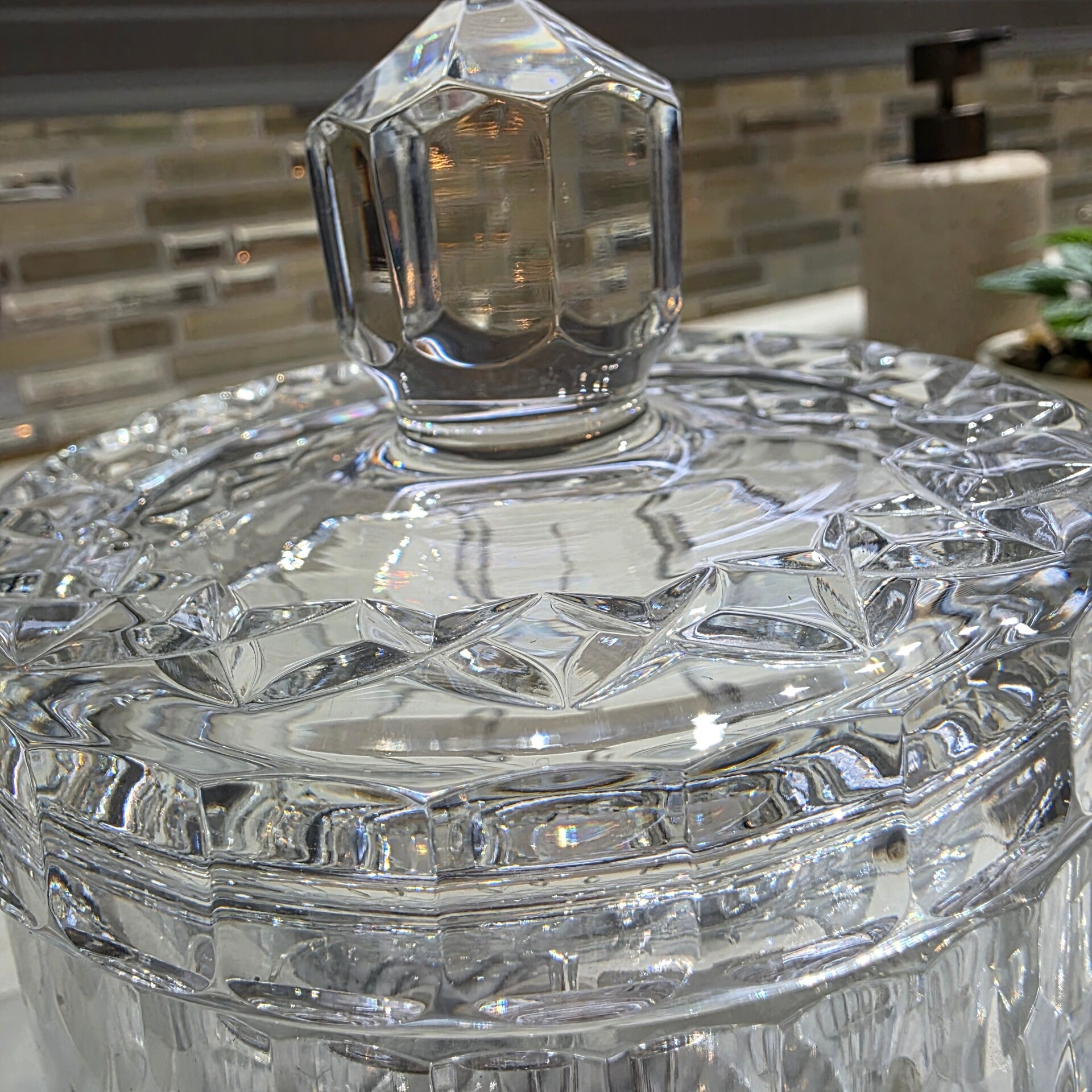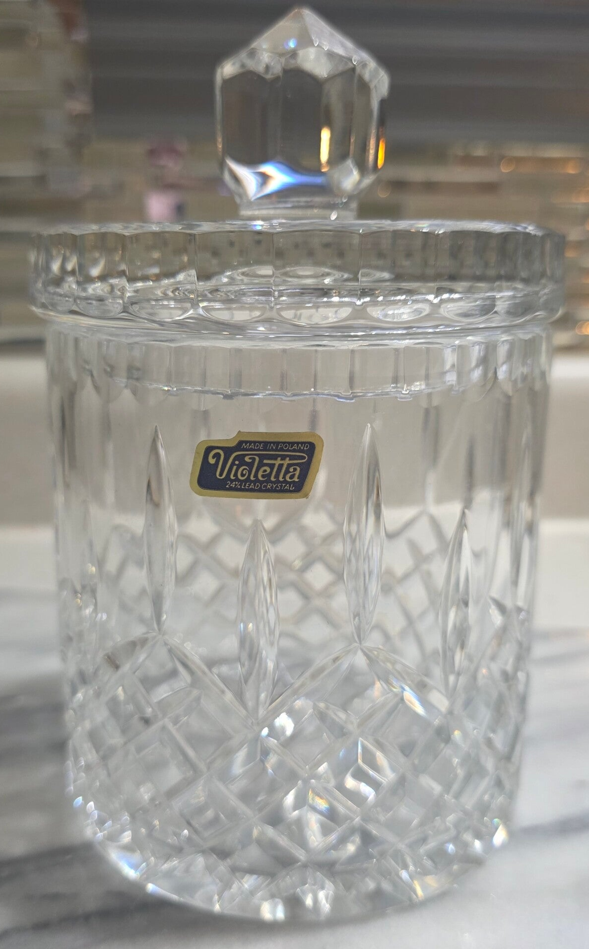 Violetta 24,% Lead Crystal Hand-Cut Glass Jar with Lid-Made in Poland