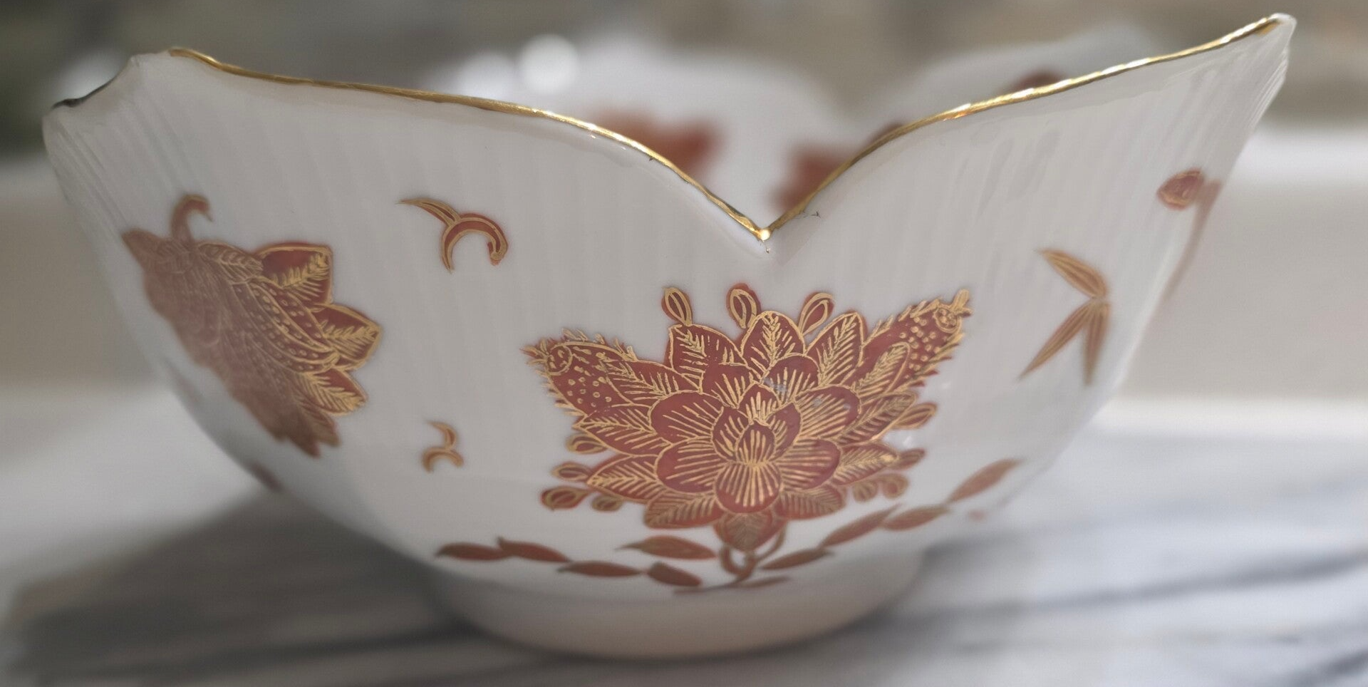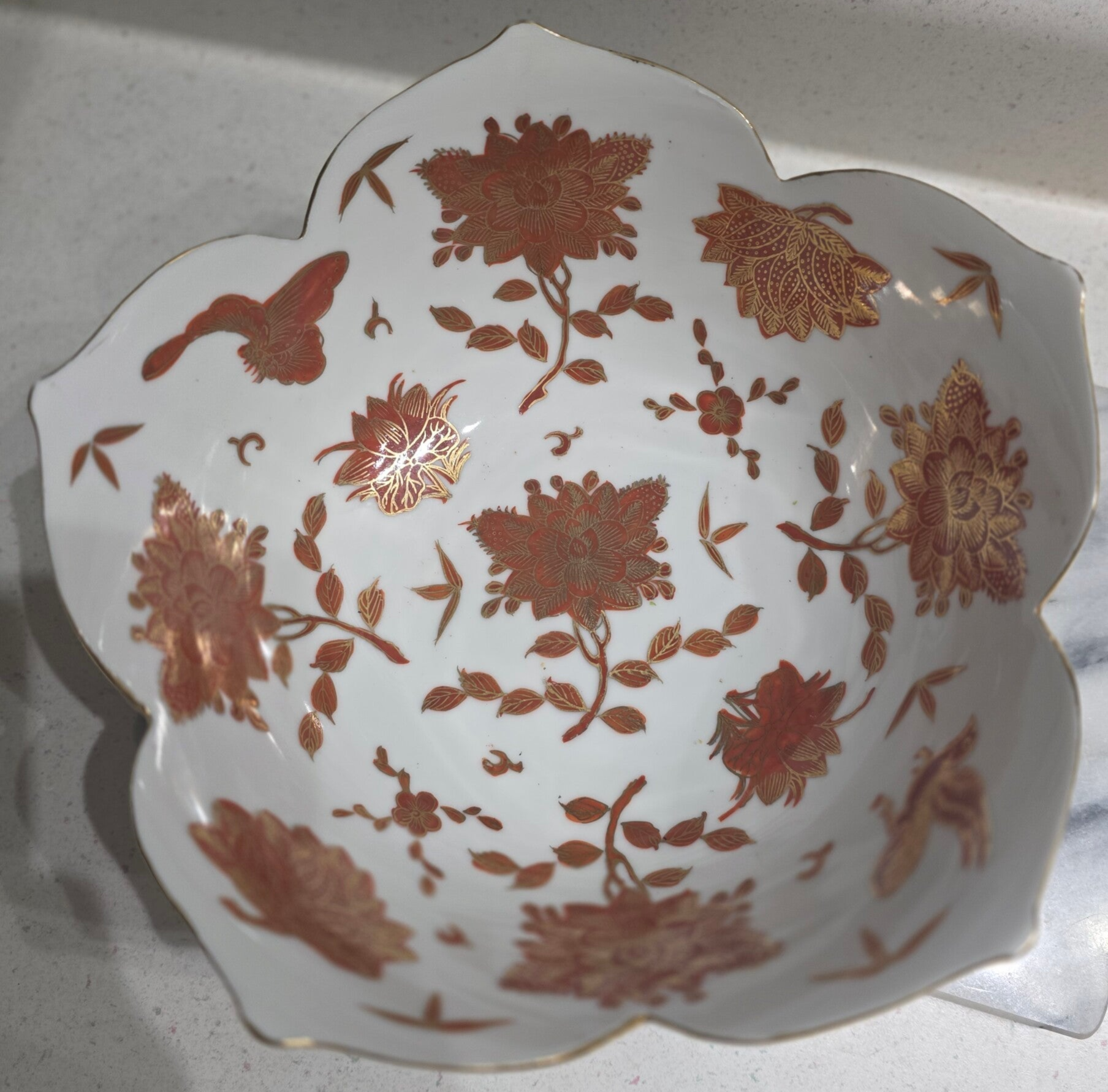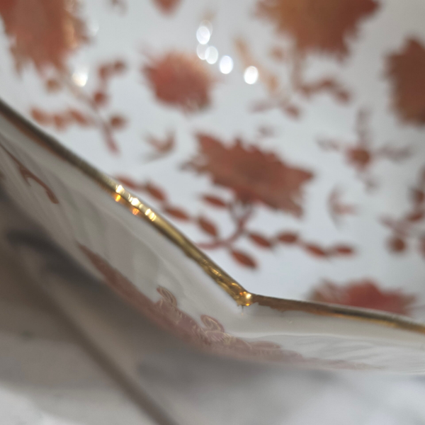 Y.T. Japanese Porcelain Bowl Hand Decorated Hong Kong Floral Gold Trim-Large