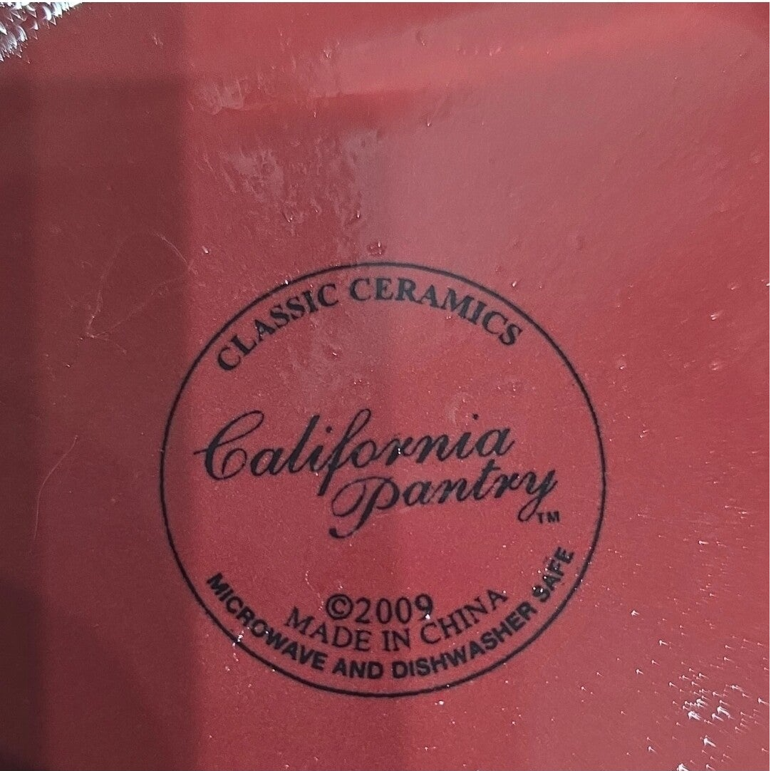 The California Pantry Classic Ceramics Red Trivet is a decorative plate made of ceramic, featuring a classic square shape with a vibrant red color. Manufactured in 2009, this microwave and dishwasher safe trivet is part of the Classic Ceramics product line by California Pantry. With a glossy finish and printed backstamp, this original piece is perfect for adding a touch of artistry to your kitchen decor. The versatile design allows for use as a trivet or serving plate, making it a practical yet stylish addition to any home.