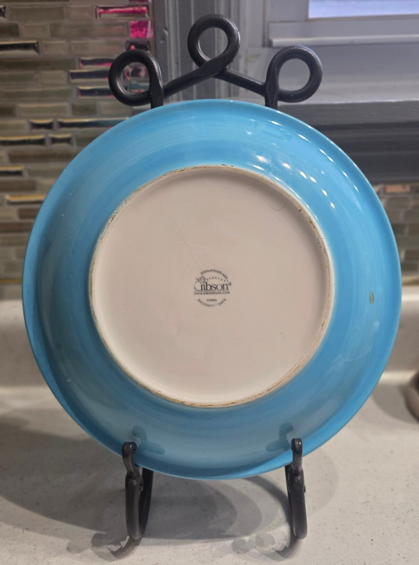 Gibson Blue Painted China Dinner Plate Dishwasher & Microwave Safe