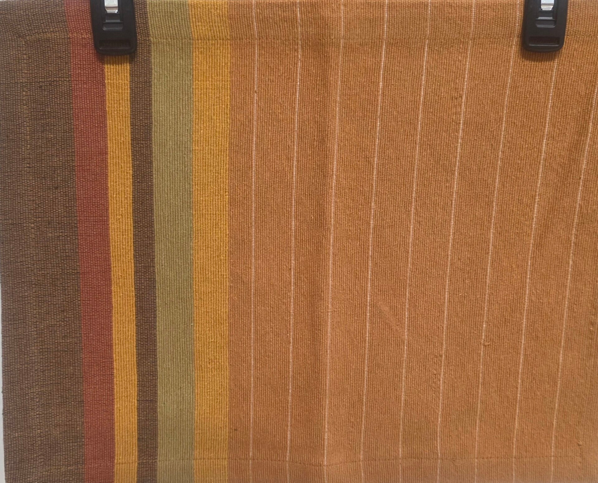 The Striped Multicolor Placemat Set of 4 is a stylish addition to any dining table. Made of durable fabric, these rectangle-shaped placemats feature a vibrant striped pattern in brown, orange, yellow, green, and red. This set of 4 placemats adds a pop of color to your dining experience, making meal times more enjoyable and visually appealing. Perfect for entertaining guests or everyday use, these placemats are both functional and decorative. Like new with no tears or stains.
