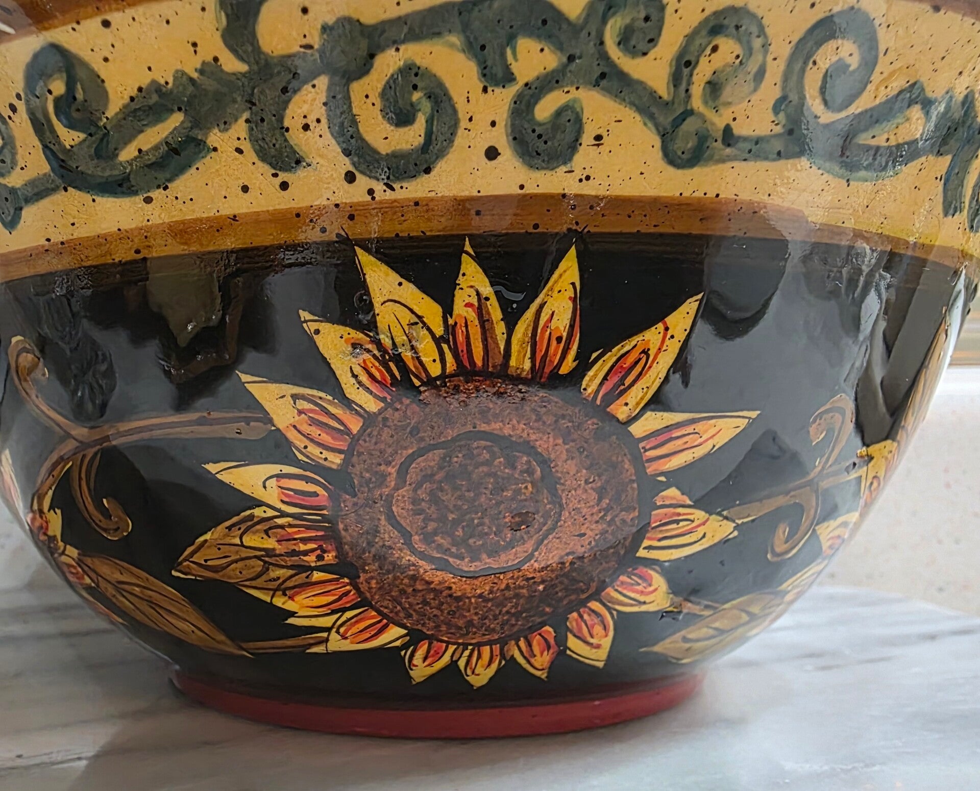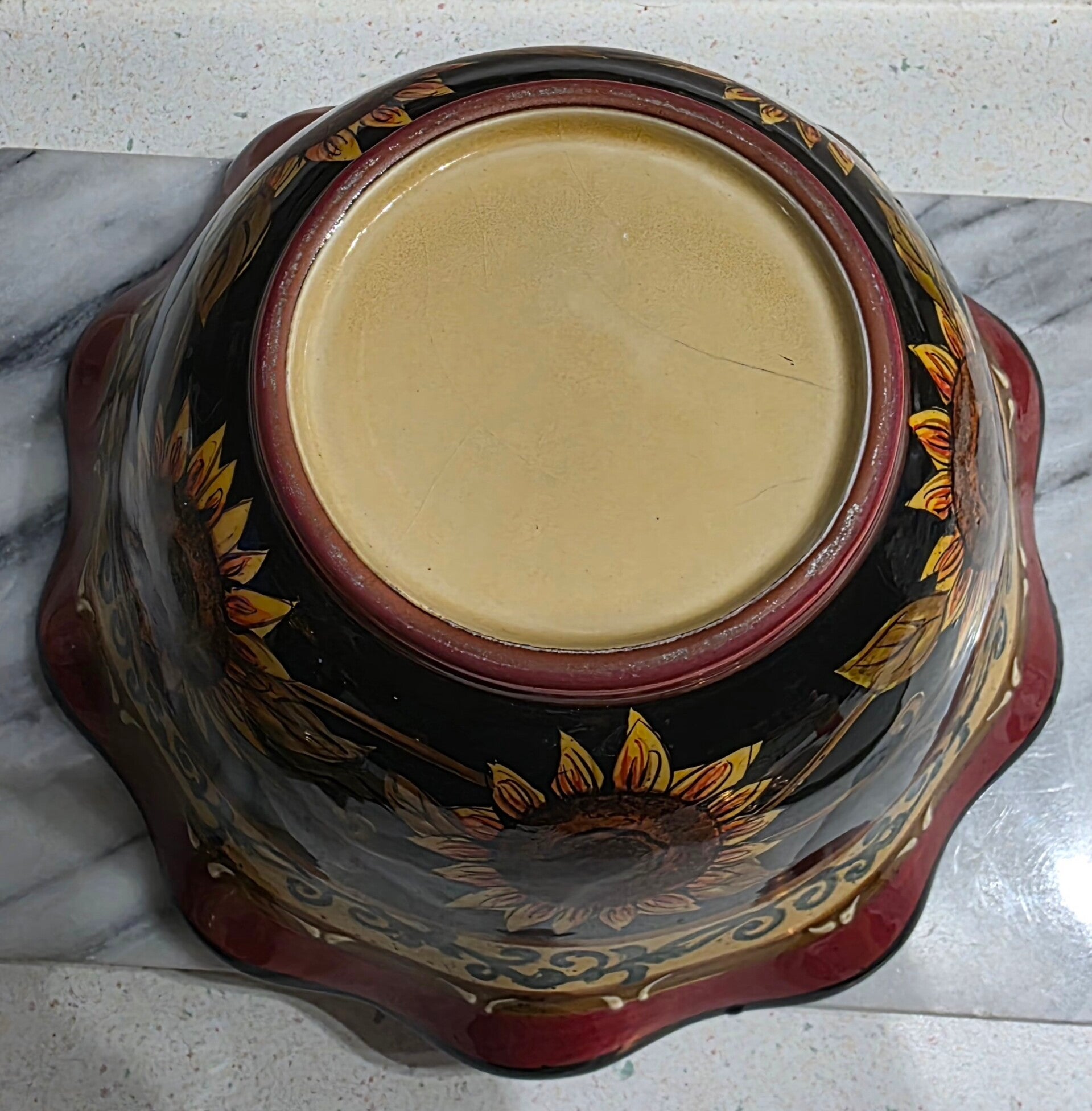 Discontinued Pier One Terra Cotta Hand-Painted Sunflower Serving Dish