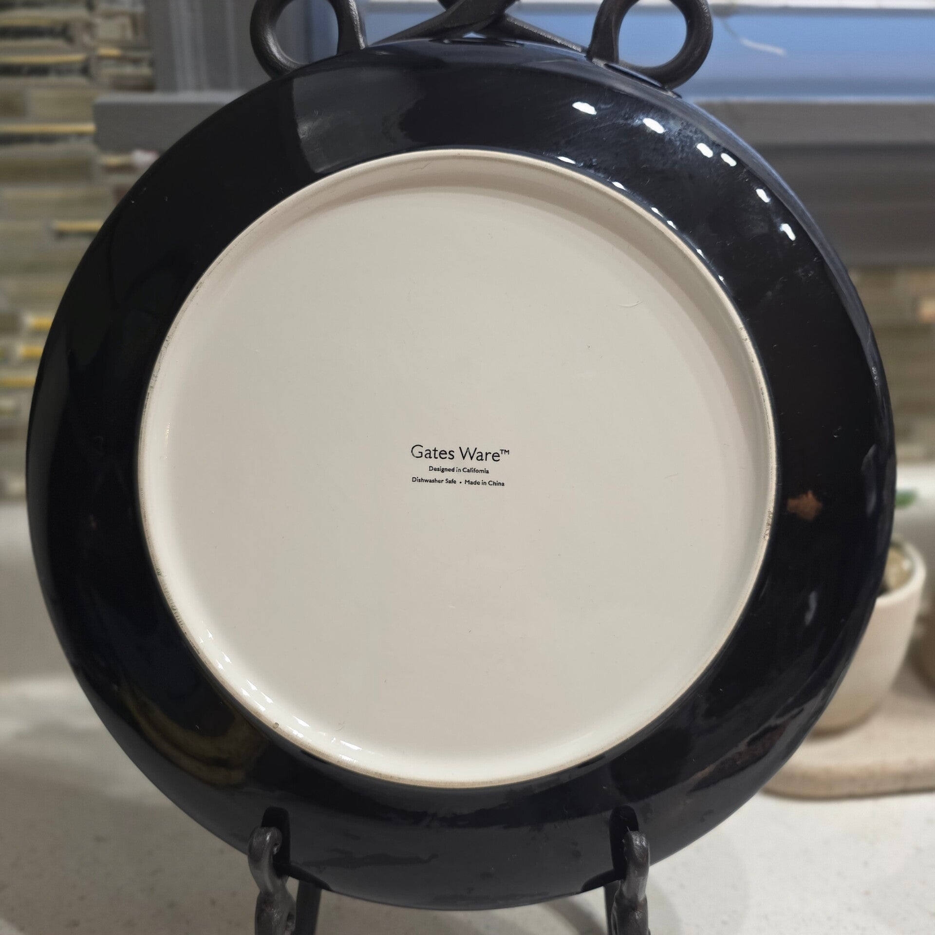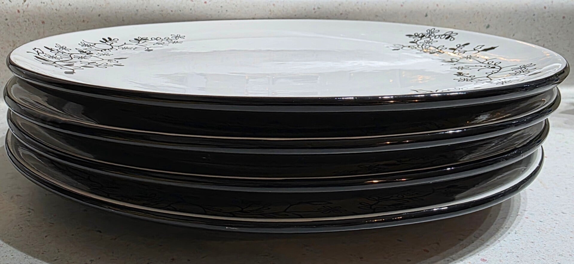 Gates Ware Black Floral Dinner Plates-Set of 4