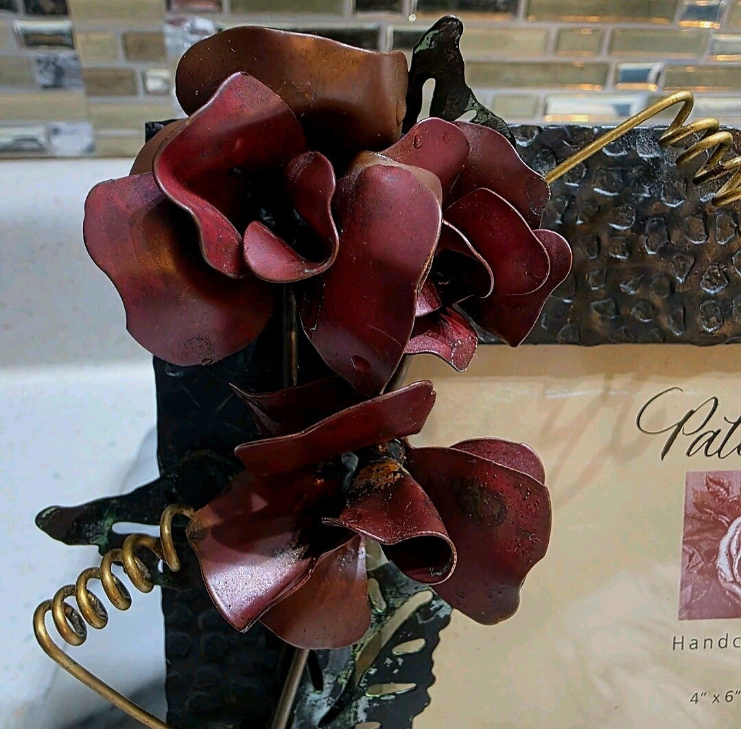 FIGI Patina Rose Handcrafted Metal 4x6 Photo Frame Floral Butterfly Ornate