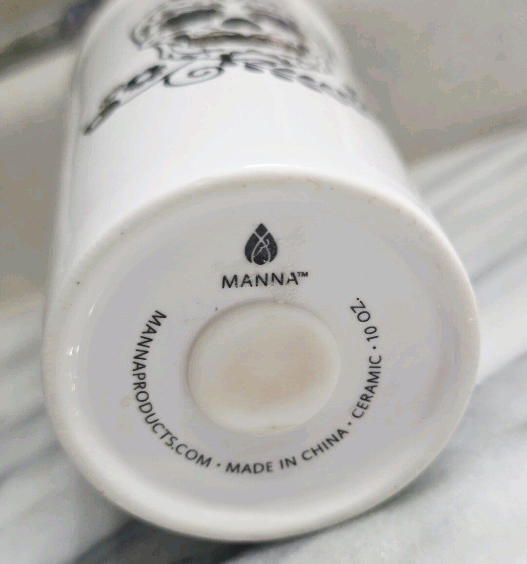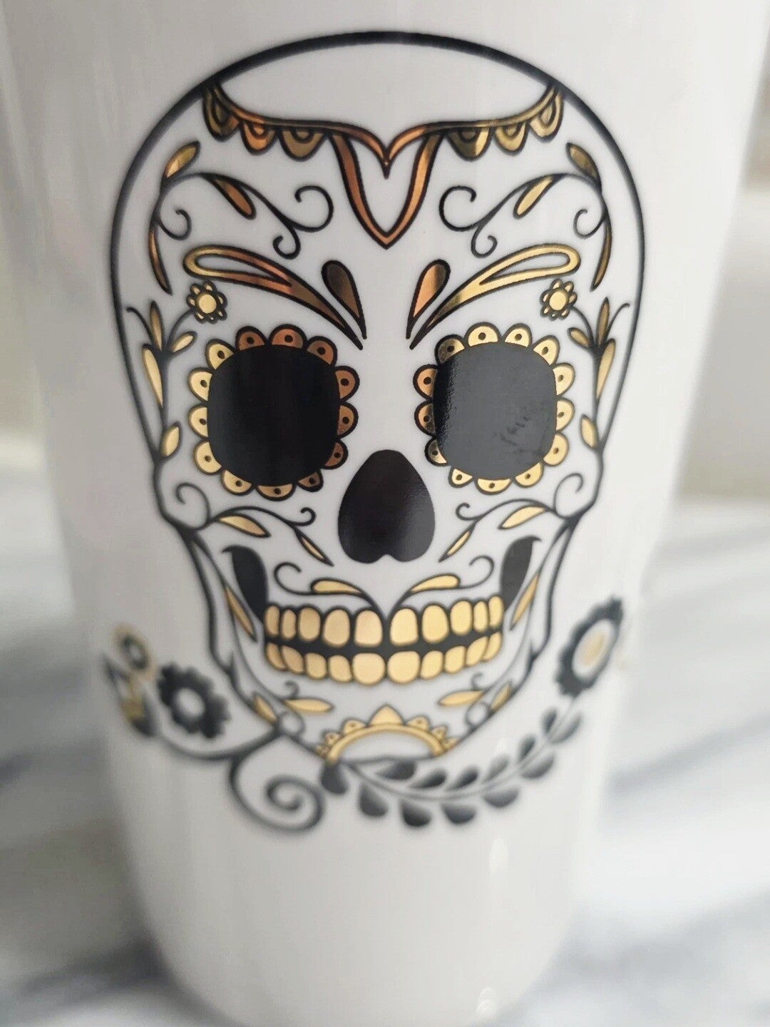 Manna Ceramic Skull Design Travel Mug White Gold Black 10 oz with Lid