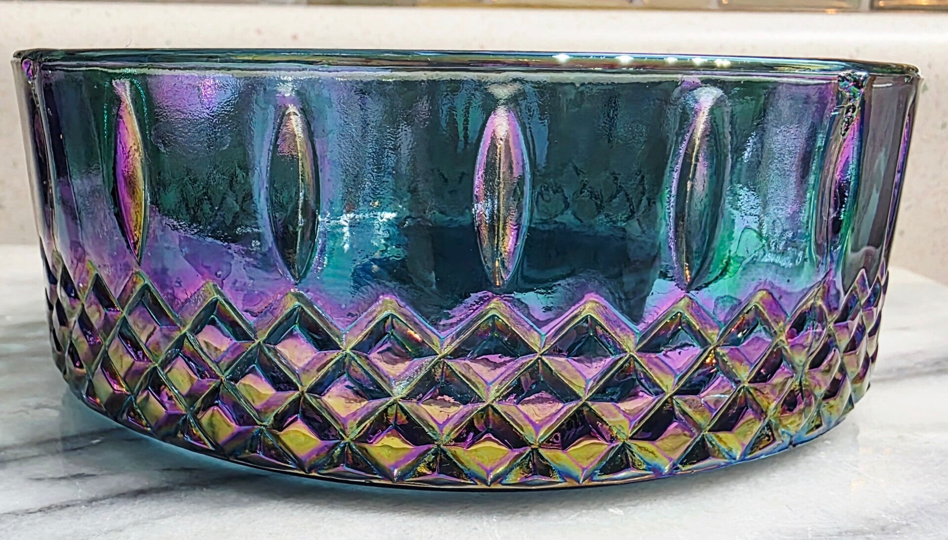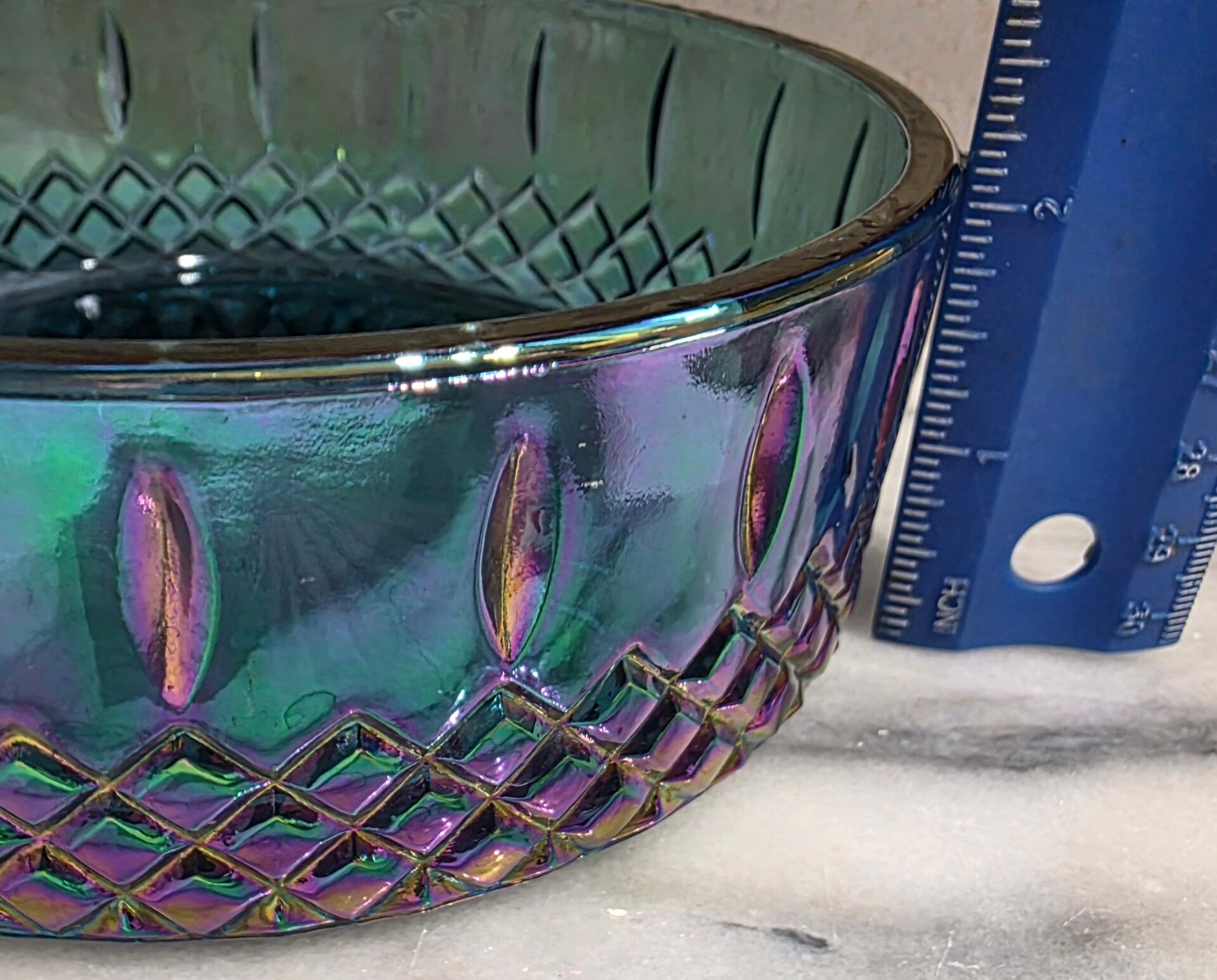 Vintage Iridescent Carnival Glass Blue Green Purple 6" Bowl