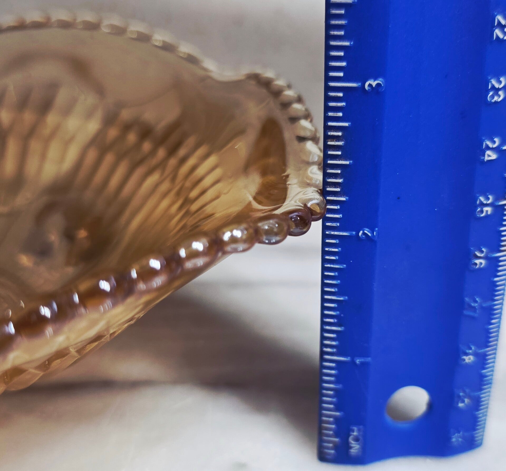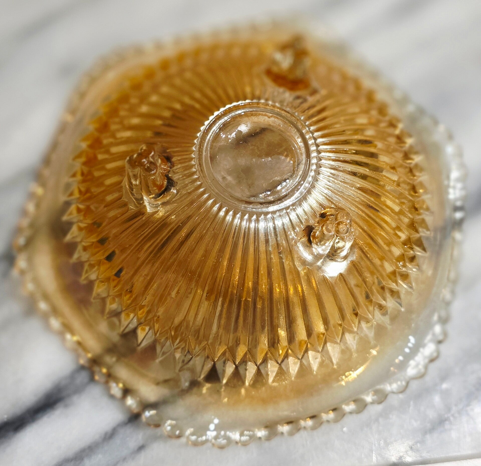 Color/Finish: Marigold iridescent (often referred to as peach luster).