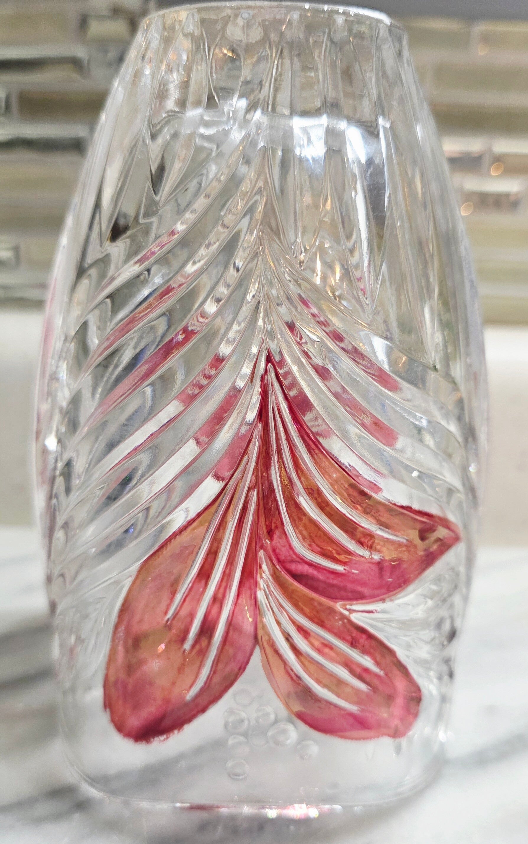 Vintage Anna Hutte Florentine lead crystal floral vase, featuring a red flash or ruby design and produced in Germany.