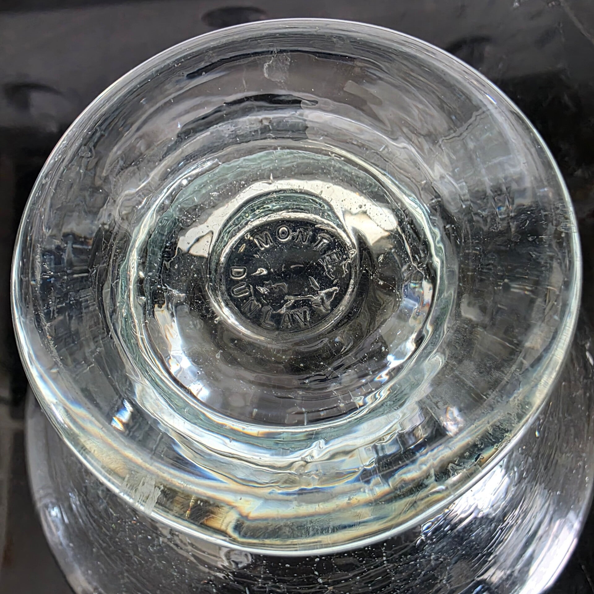 Montana Dunlavy is an artist whose work, while predominantly recognized in the realm of pottery, may extend to other mediums or collaborations. The "imprinted" nature of the piece suggests a signature or maker's mark, common in studio art, whether it be glass or ceramic.