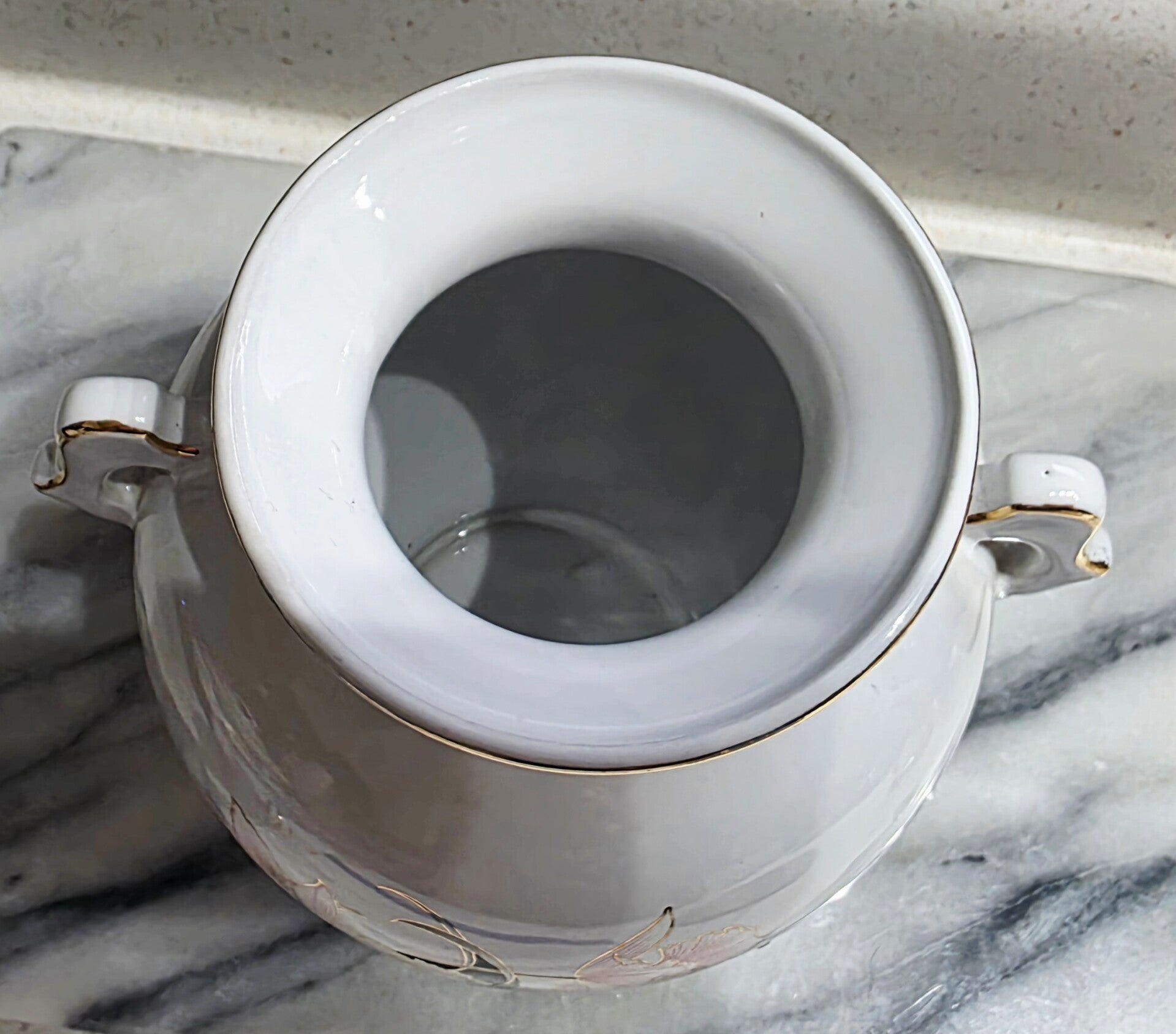 Fine China of Japan porcelain vase featuring an orchid and butterfly design with gold trim, typically produced in the 1980s.