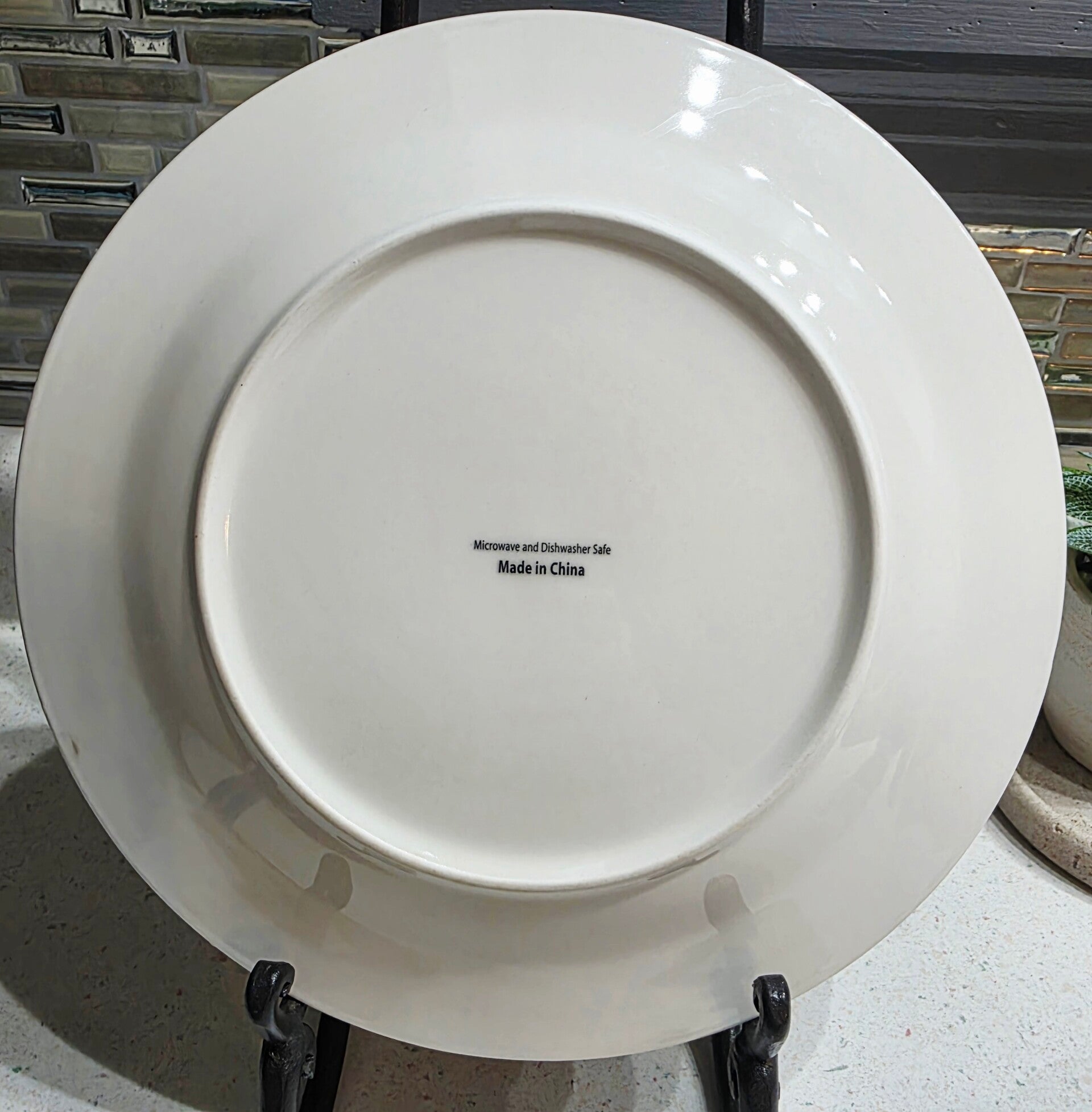 Made of durable stoneware. Measuring 10 1/2" in diameter and heavy, weighing over 1lb each. Microwave and dishwasher safe. Discontinued piece.