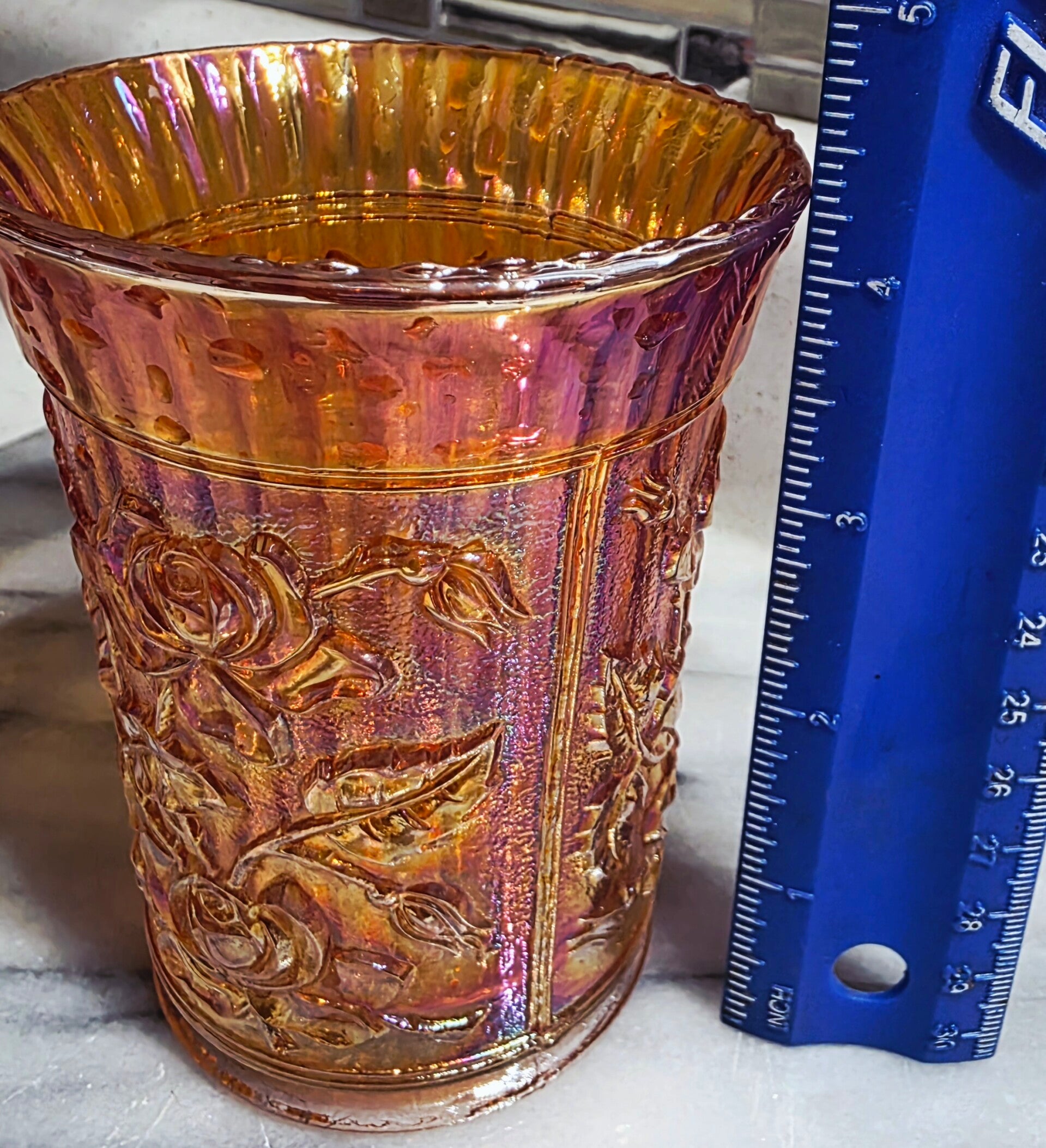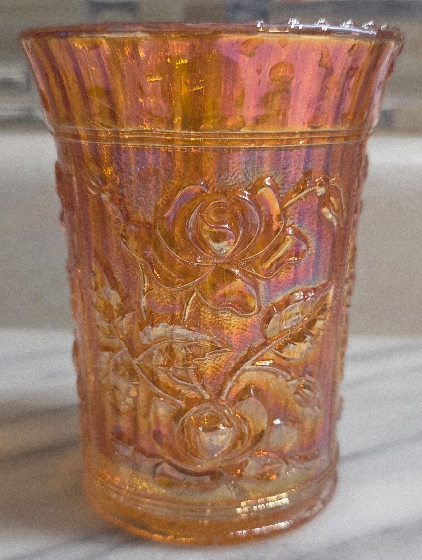 Vintage Imperial Glass Marigold Lustre Rose Carnival Glass 9oz. Tumbler