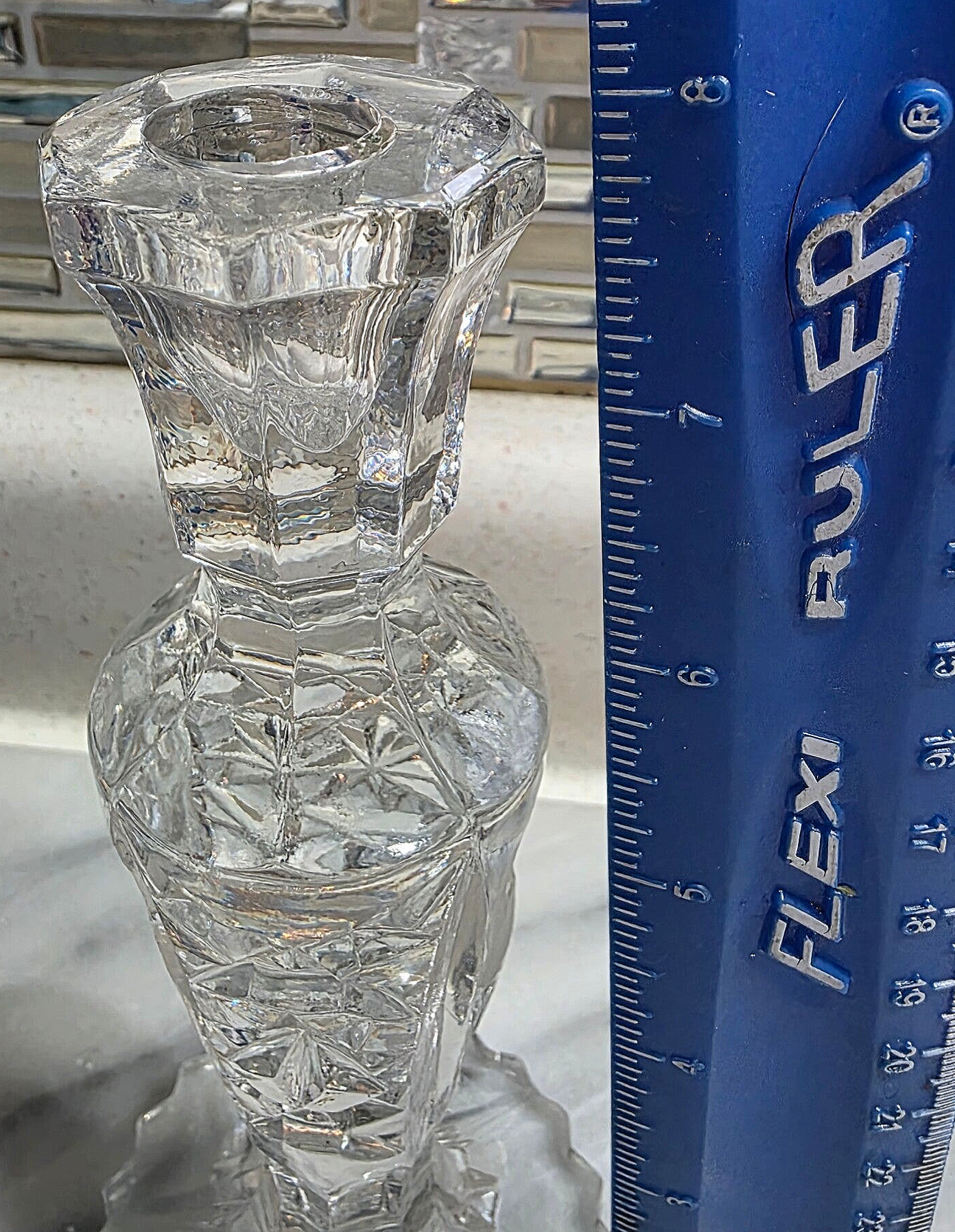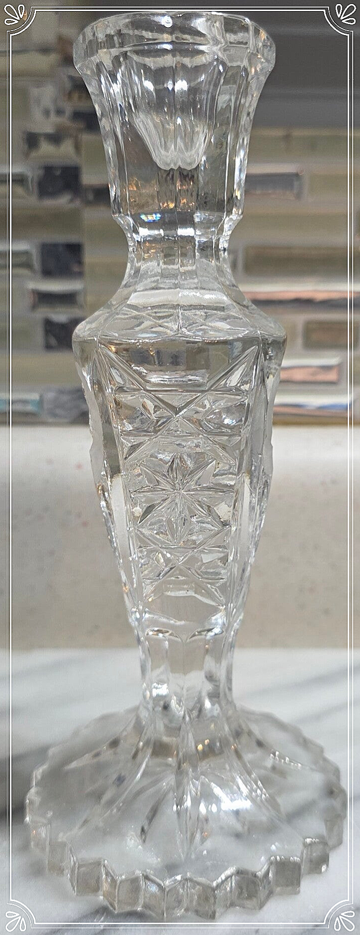 Vintage Lead Crystal Pinwheel 8" Candlestick Holder