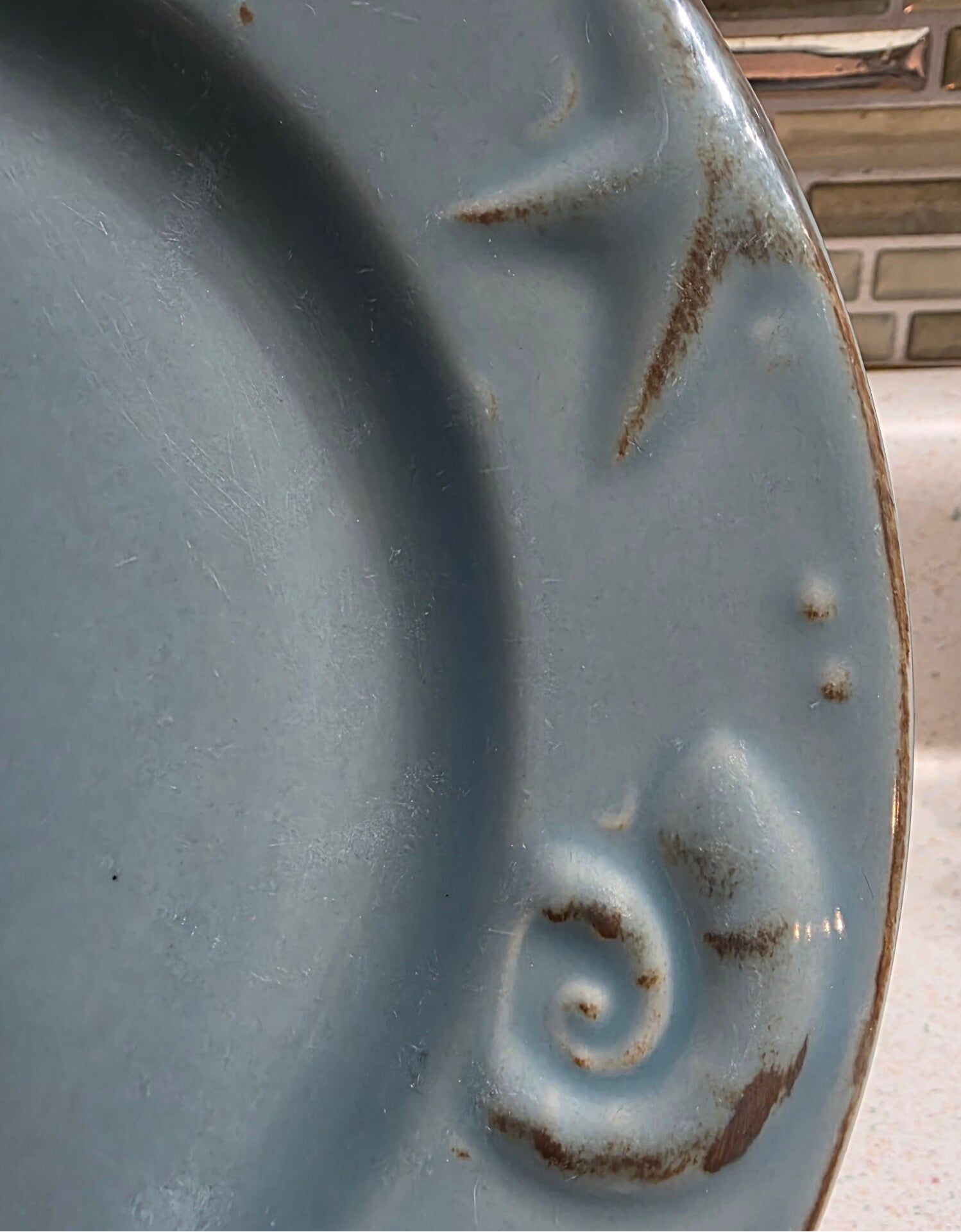 Measures 8 1/4 in. Dishwasher Safe, Microwave Safe. Discontinued Piece. Show signs of regular use.