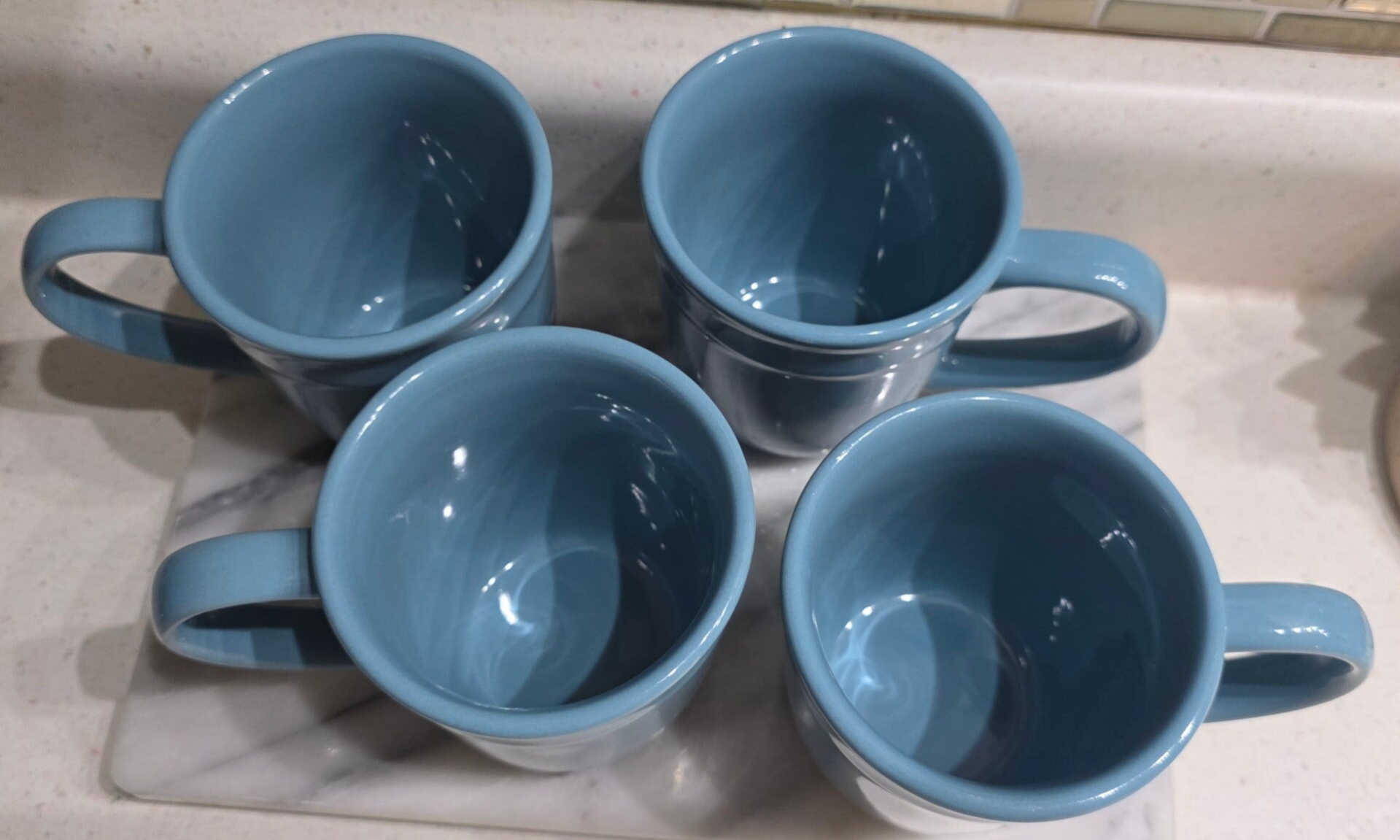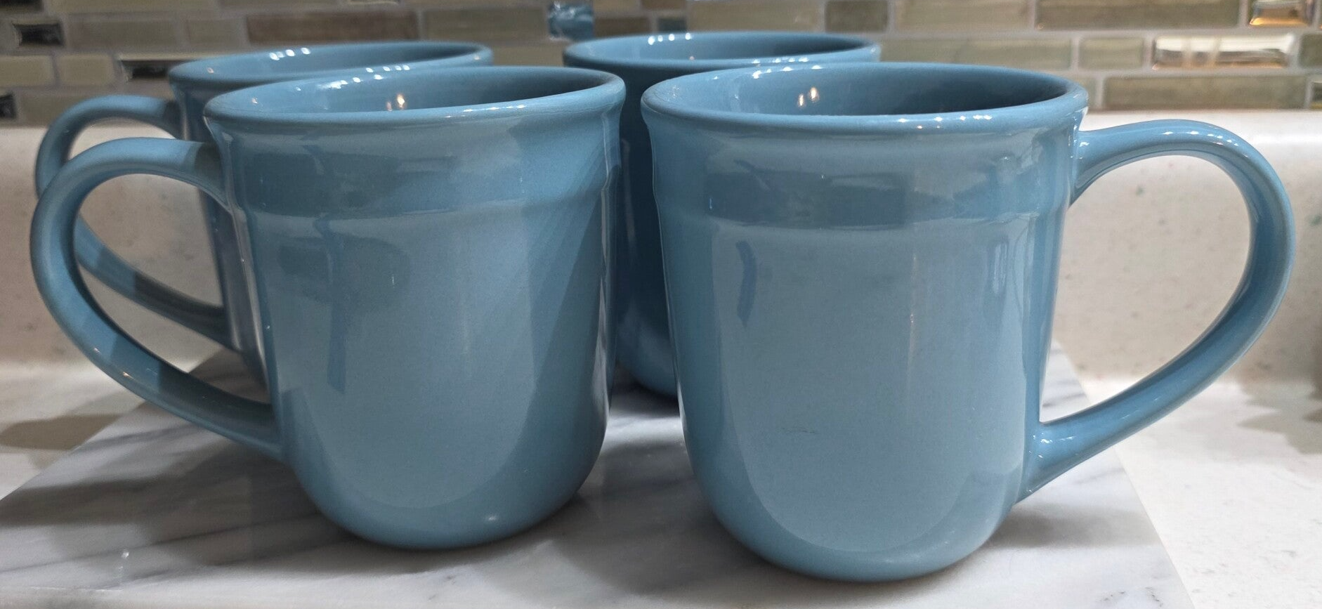 Dishwasher and microwave safe. Holds 16 oz of hot or cold beverages. Solid stoneware weighing nearly 1 lb each. Great condition with no chips or cracks. $18 each (4 available) All 4 $64