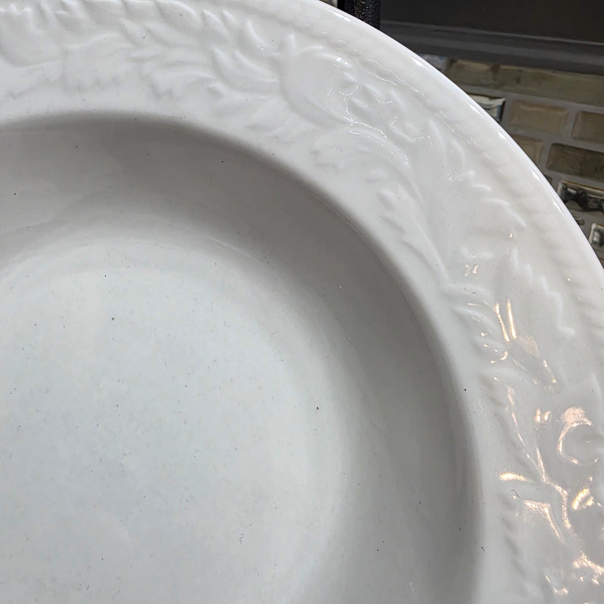 Made of durable stoneware. Measures approximately 9 inches in diameter. Oven, microwave, and dishwasher safe. Produced from 1999-2002 and is now discontinued.