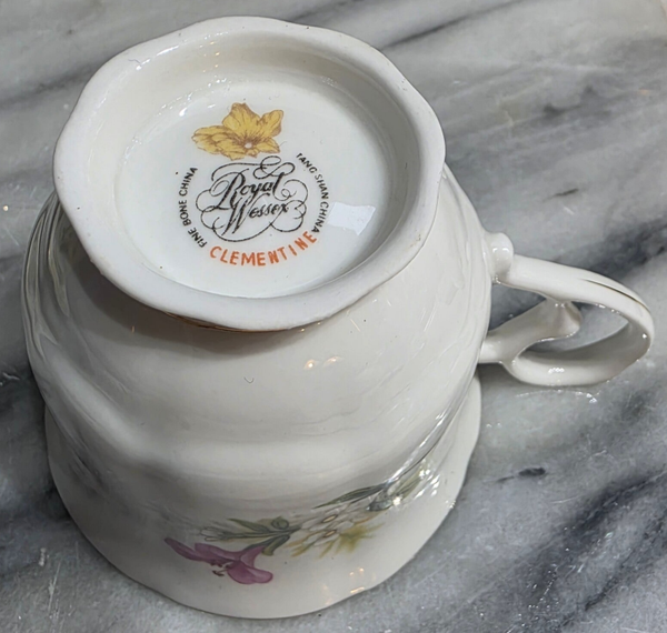Made of fine bone china. The Clementine Floral pattern is now a discontinued line. It was most active during the 1970s and 1980s.