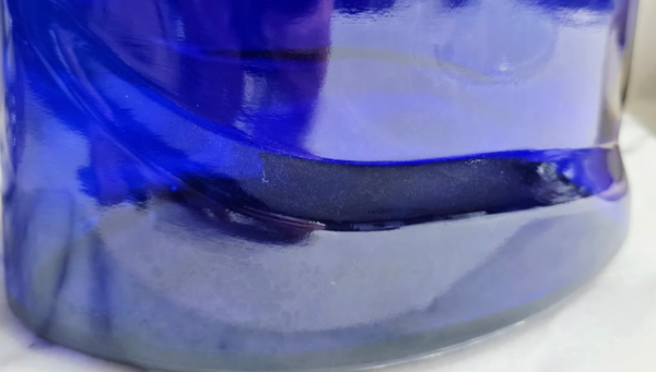 Features a distinctive tall, oval, or curved shape, with a "wave" feature. The base is typically with "150 cl" (indicating capacity), "2597" mold number, and a letter "A" manufacturer's mark. Often sold as barware for holding liquids and can used decoratively as a beautiful vase.