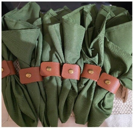 Green Fabric Napkins + Brown Faux Leather Napkin Rings Set of 6