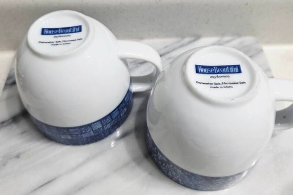 House Beautiful Mykonos Coffee/Soup Mugs Blue/White Patchwork & Floral Set of 2