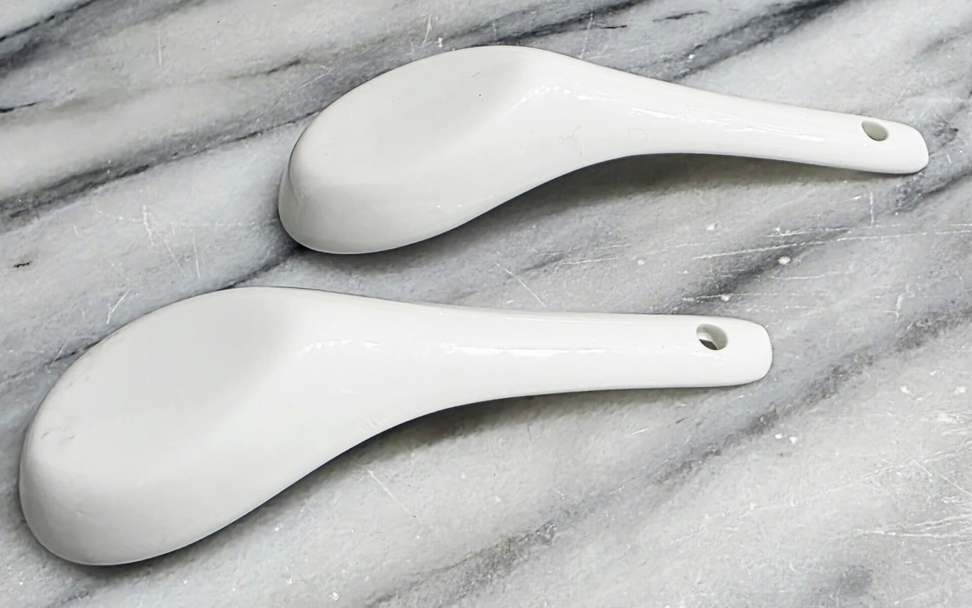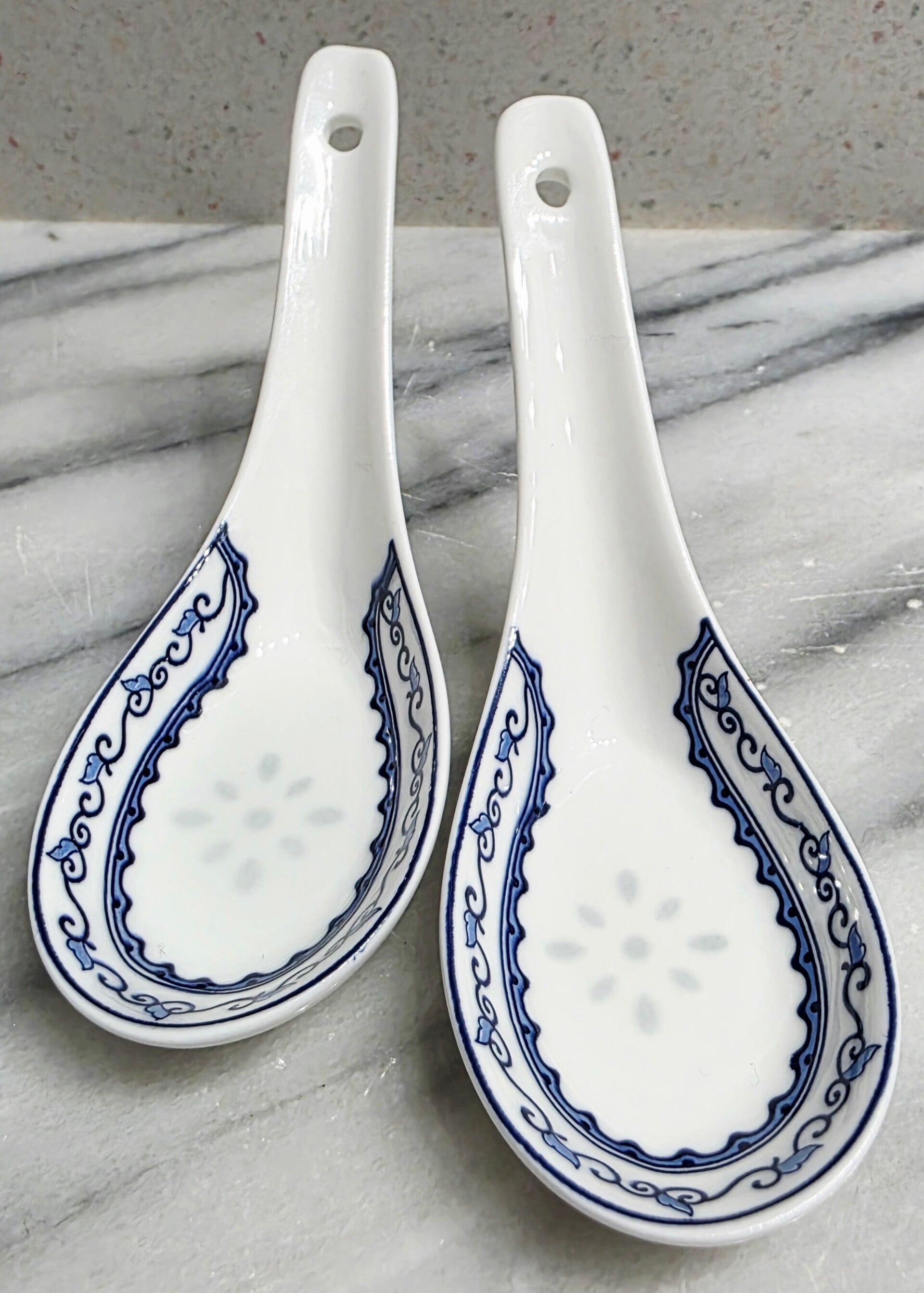 Vintage Blue and White Ceramic Asian Soup Spoons-Set of 2